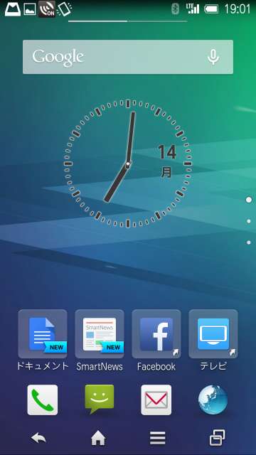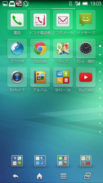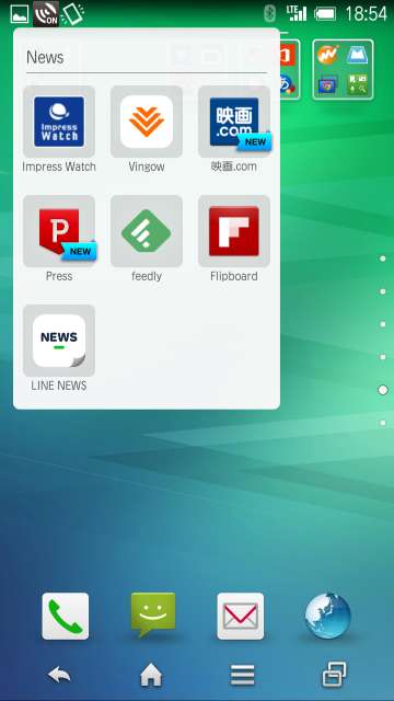 そして、新バージョンのFeel UXで、なかなか便利なのがドック機能だ。戻るやホームなどのアイコンの真上に位置する画面下段に、常に表示できるアイコンを設定できるというもので、よく使うアプリやショートカットを登録しておくことができる。このドック機能は前述の「ホーム設定」で表示のON/OFFを設定することができ、表示するアイコンはアプリのアイコンを並べ替えるときと同様の操作で位置を変更することもできる。すでにドックに設定されているアイコンに他のアプリやショートカットのアイコンを重ね合わせて、フォルダを作成することも可能だ。