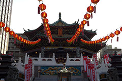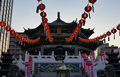 点光源の多い場所で夕暮れどきに、奥の建物をメインの被写体として撮影した写真では、プログラムオートだと空が真っ白になってしまいます。HDRモードで撮影すると、全体的に明るさが増し、提灯の赤い光も残しながら建物などのディテールも再現。プログラムオートでは白かった空の青さも深くなり、実際に見ていた状態に近くなっています。