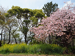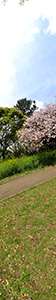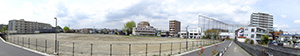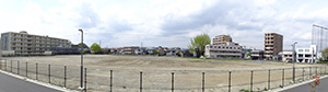 広い空き地で撮影してみました。ズームを広角側に設定して、通常撮影しても、十分に広々とした写真になるのですが、ぐるっとパノラマを使うと、空き地の端から端まで撮影でき、その広さが味わえます。
