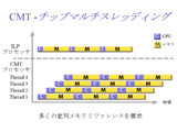 | CMTのイメージ。メモリ待ち時間の間に別のスレッドの処理を行う。UltraSPARC IVが同時に扱うスレッドは2つ |