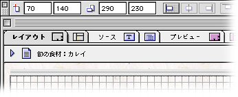 | Adobe GoLive4.0は、配置したオブジェクトの座標をピクセル単位で指定できる。レイアウトパレット画面の上にある、座標軸のウィンドウに数値を打ち込めば、正確にレイアウトをコントロールすることができるというわけだ。ドラッグ&ドロップで配置したオブジェクトを、さらに細かく調整することがとても簡単になっている。緻密なレイアウトコントロールを目指すデザイナーにとって、強力な機能の一つだ。 |
