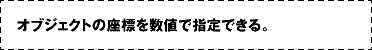このボックスに数値を入力すると、その位置にオブジェクトが移動する。