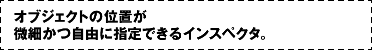 | 画像やテキストなどのオブジェクトを管理できるインスペクタ。自由で正確な配置を可能にする。 |