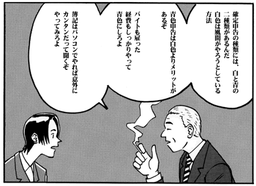 風間コージ青色申告を知る 確定申告って何だろう? 実際の確定申告 青色申告のメリットって? すべては簿記から始まる 風間コージ青色にして、ハッピー |