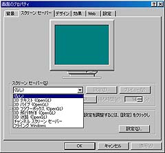 「スタート」→「設定」→「コントロールパネル」→「画面」を選択します。「スクリーンセーバー」タブを表示します。