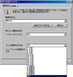 「スタート」→「設定」→「コントロールパネル」→「電源の管理」を選択します。