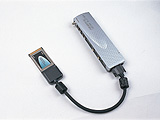 | 最近はパソコンのCPUパワーやディスク容量が上がってきたこともあって、パソコン上で動画を楽しみたいという人が増えている。単にDVDビデオを再生するだけとか、ネットからダウンロードした動画を観るというだけならいいが、例えばパソコンでテレビ番組を録画するとかDTVをするということになると、けっこういろいろな機材や知識が必要になったり、専用パソコンが手っ取り早かったりして、つまり、メンドーでお金もかかったというのが現状だ。 ところが、東芝から新しく登場したパーソナルビデオプレーヤーことMEE100ASを使えば、いろんな方向の"パソコンでの動画遊び"を始められる。しかも、かなり手っ取り早く、オマケに比較的安価でできちゃうというから要チェック。 MEE100ASは、一言で言えば、一般のノートPCにビデオ入出力機能とテレビチューナー機能とテレビ番組録画機能とノンリニアビデオ編集機能を付加するための周辺機器。って全然一言になってねえよ>拙者。ぶっちゃけた話、MEE100ASつないだノートPCは、テレビになり、ビデオデッキになり、ビデオ編集機になる。MEE100ASは、ノートPCに多くのビデオ機能を付加させる機器なのである。 |