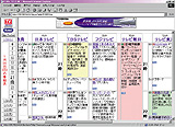 | まず目を引くMEE100ASの機能は、TVアンテナに接続すれば、ノートPC上で一般の(地上波)テレビ番組を観られるということ。つまり、ノートPCがそのままテレビとして使えるのだ。が、まあ、ここまでだと単なるテレビチューナー機能。凄いのは、テレビ番組をMPEG2形式(DVDビデオにも採用されている高画質・高音質の動画フォーマットだヨ!!)で録画・再生できるという点。MEE100ASにより、ノートPCがテレビになりビデオデッキになるのだ。また、MEE100ASは外部のAV信号も入力可能なので、手持ちのビデオ等の映像を"ノートPC上にダビング"したり、ノートPC上のMPEG2動画を外部のビデオに録画することもできる。もちろん、いったんPCへ録画してしまえば、持ち歩いてどこででも楽しめる。MEE100ASにより、ノートPCは他のビデオ機器とシームレスに接合されまくりってわけだ。 MEE100AS&ノートPCで、テレビ番組を観たり録画したり、外部のビデオ機器と映像のやりとりをするには、同梱のLIVE MEDIA SEというアプリケーションを使う。ビデオデッキ内蔵型テレビという感じで便利に使えるアプリなのだが、このアプリ、インターネットTVガイドに対応していたり、パソコンでの動画処理ならではのトリッキーな再生方法等もできる。 例えば、インターネットTVガイド(Webページ)で好みの番組をポポンと選べば、その番組情報がLIVE MEDIA SEに受け渡され、手間なく予約録画ができる。録画した画像はサムネイルで一覧でき、クリックすれば即再生される。録画の好みの箇所だけつなげて再生することも可能。また、番組録画中でも、既に録画したシーンから見始められる(追っかけ再生)など、ハードディスク録画ならではの楽しみ方もできる。手持ちのノートPCでコレができるようになるのだ!! |