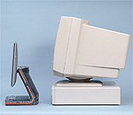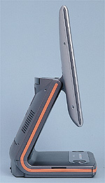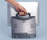 ![]() 17インチCRTと比較してもDynaTopの省スペース性がよくわかる。持ち運びも本体上部の取っ手によってスムーズに行なえるだけでなく、キーボード裏には余ったケーブルを収納できるケーブルケースも付く |