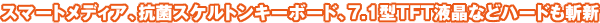 Libretto ffの3つめの特徴が、デジタルカメラの記憶媒体として知られるスマートメディアのドライブを搭載した点だ。これまでケーブルかアダプターを介して行なっていたデータ転送の手間が、スマートメディアドライブの搭載により軽減される。大容量データも簡単に取り込め、加工編集ができるし、友人とのデータ交換も手軽に行なえるわけだ。そのほかにも、マニア心をくすぐる抗菌スケルトンキーボード、800×480ドットを表示する7.1型TFT液晶、片手で操作可能なリブポイントなど魅力的なハードウェアが満載されている。 |