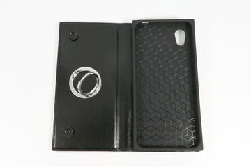 AQUOS sense2/Android One S5 手帳型耐衝撃レザーケース KAKU リング付ピタッとカバー ブラック/ブラック