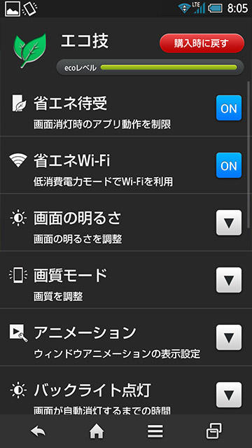 これはもうスマートフォン同士の比較なので、しくみ云々は関係なし。リアルに電池容量は約2倍、連続通話時間は約2.4倍、連続待受時間は約1.6~1.7倍の差がある。しかもディスプレイは高精細で省電力性能の高いIGZO搭載液晶を採用し、省電力技術の「エコ技」機能も従来に比べ、グッと進化を遂げている。ちなみに、NTTドコモ向けのAQUOS PHONE ZETA SH-01Fはこの冬のモデルの中でもトップクラスの実使用時間の数値を持っているが、AQUOS PHONE SERIE SHL23は通信方式など、細かい部分の仕様こそ違え、基本仕様はほぼ同等のため、こちらもほぼ同程度の実使用時間が期待できるというわけ。AQUOS PHONE SERIE SHL23は筆者自身も使いはじめているが、電池の持ちは安心して使えるレベルに仕上がっているという印象だ。