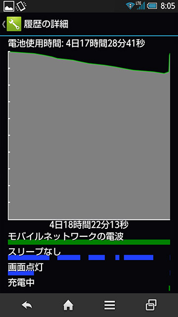 スマートフォンの場合、基本的なしくみの違いとして、待機中も自動的に通信をしたり、画面サイズが大きく、CPUパワーも強大なため、どうしても消費電力が多いとされている。これはこれで事実なんだけど、もうひとつ隠れた要因として、おそらく多くの人はスマートフォンに慣れるに従って利用時間そのものが長くなる傾向にあり、一段と電池残量が厳しくなってしまうという指摘もある。