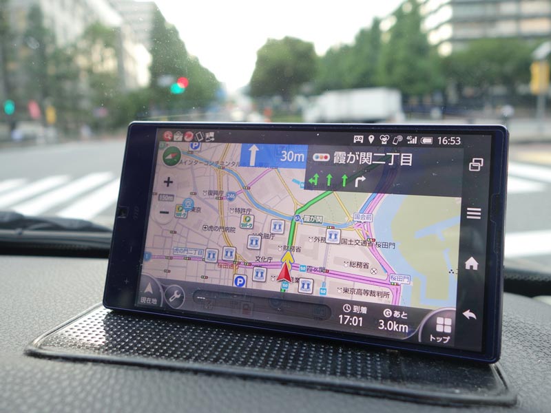 そして、映像以外のものとしては、個人的に気に入ってるのがクルマでのナビゲーションアプリ。Android標準の「地図」でも利用できるが、NTTドコモの「地図アプリ」、auの「NAVITIMEドライブサポーター for auスマートパス」「助手席ナビ」なども情報が細かくて、かなり便利に使える。これからのシーズン、クルマで出かけたり、旅先でレンタカーを使うこともあるだろうけど、そんなときにもEDGESTデザインのAQUOSスマートフォンなら、大画面でしっかりとルートを確認できるわけだ。
