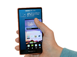 そして、新バージョンのFeel UXで、なかなか便利なのがドック機能だ。戻るやホームなどのアイコンの真上に位置する画面下段に、常に表示できるアイコンを設定できるというもので、よく使うアプリやショートカットを登録しておくことができる。このドック機能は前述の「ホーム設定」で表示のON/OFFを設定することができ、表示するアイコンはアプリのアイコンを並べ替えるときと同様の操作で位置を変更することもできる。すでにドックに設定されているアイコンに他のアプリやショートカットのアイコンを重ね合わせて、フォルダを作成することも可能だ。