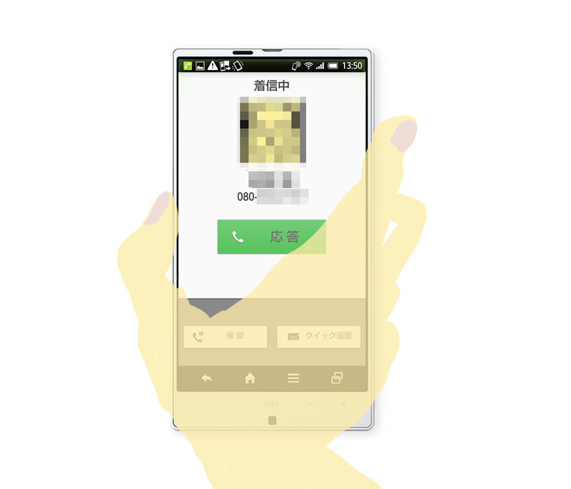 もう少し手軽な方法としては、グリップマジック対応のAQUOS ZETA SH-04FやAQUOS SERIE SHL25に限られるけど、「着信時簡易シークレット」も便利だ。着信があったとき、上述のシークレット設置同様、画面には電話番号のみが表示されるが、端末を手に持ち、グリップセンサーが反応すると、相手の名前などが表示されるという機能だ。