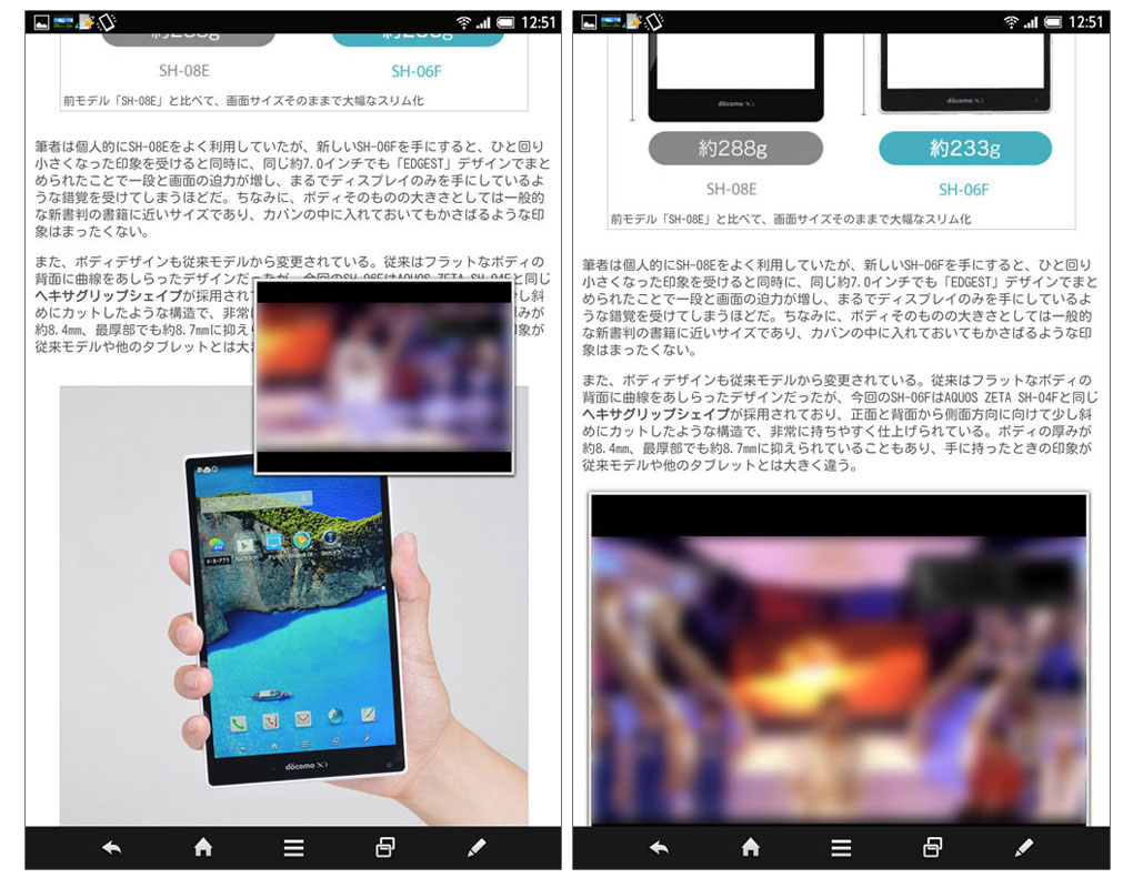 それと、テレビ視聴や、Webブラウジングなど普通のオペレーションを行なったときのバッテリーの保ちも、SH-06Fの方が良かったことも付記しておこう。これは、SH-06Fが省電力性能に優れたIGZO液晶ディスプレイを採用しているからだろう。