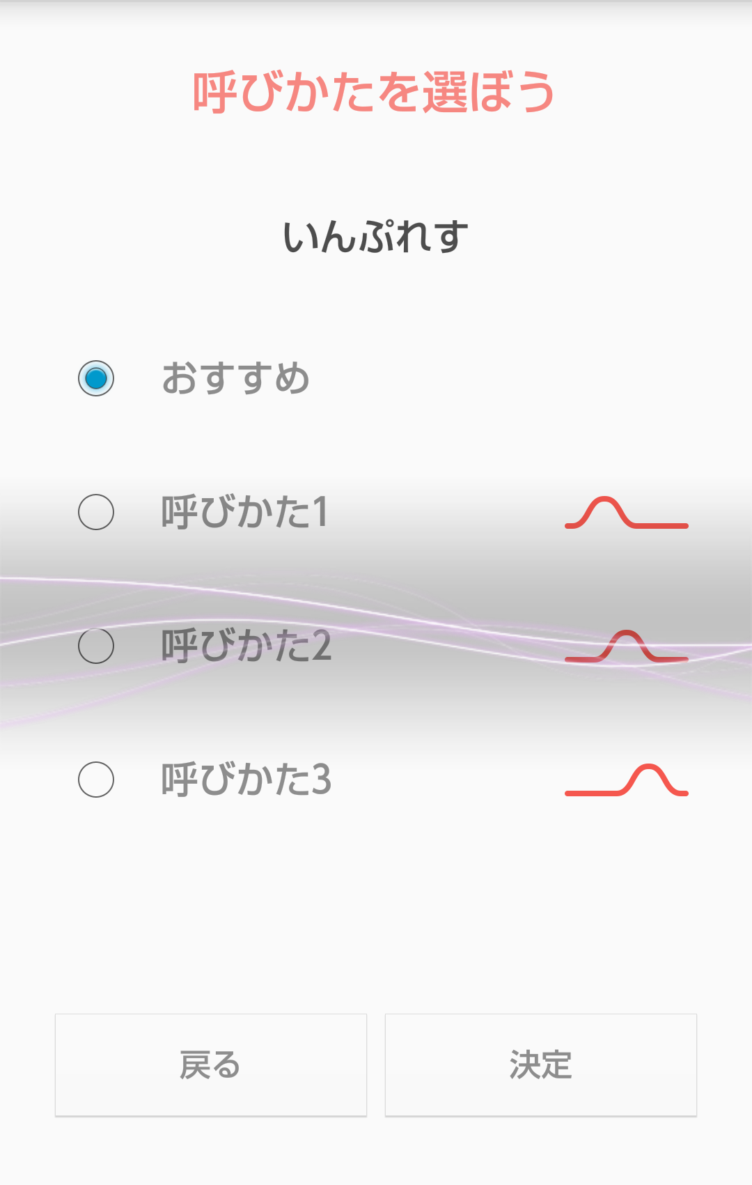 設定方法は設定メニューから[便利機能]-[エモパー]-[あなたについて]-[あなたのニックネーム]の順にタップし、ニックネームを入力後、[OK]をタップする。「呼びかたを選ぼう」の画面が表示されるので、[呼びかた1][呼びかた2][呼びかた3]のいずれかをタップして、実際の呼びかた(呼ばれ方)を聞いてみて、しっくり来るものを選ぶという流れだ。