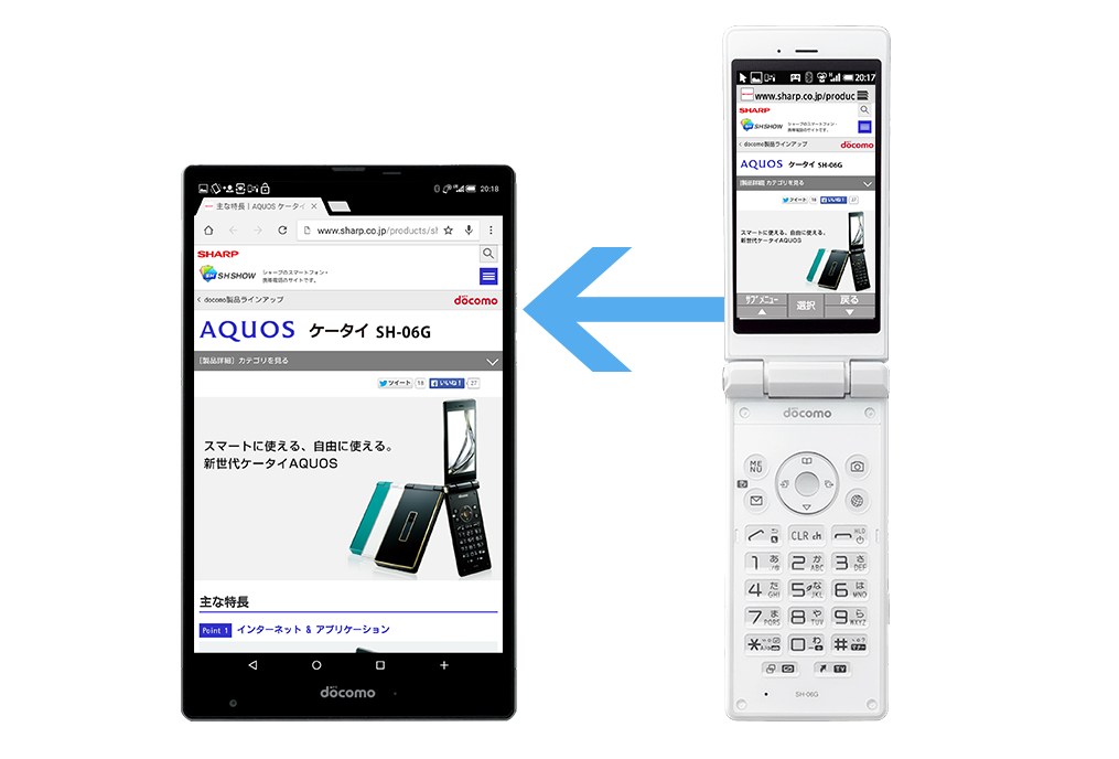SH-06Gで表したWebページをSH-05Gに転送できる