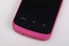 101SHではスライド式ボディを開くことで、テンキーからの文字入力が可能だが、端末を閉じた状態では他のAndroidスマートフォンと同じように、タッチ操作によるオペレーションが可能だ。ディスプレイ下には[MENU]キー、[ホーム]キー、[戻る]キーがいずれもタッチセンサーの状態で装備されており、エリアも十分な広さで操作しやすい。