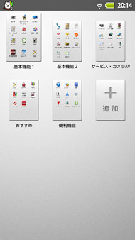 ホーム画面はそれぞれのボディカラーに合わせた壁紙がセットされ、最大10枚まで追加することができる。アプリの一覧が並ぶランチャー画面は出荷時に「基本機能1」「基本機能2」「サービス・カメラAV機能」「おすすめ」「便利機能」の5枚に分類されており、目的のアプリを探しやすくしている。もちろん、自分でカスタマイズすることも可能で、「仕事」「SNS」といったグループ分けを作り、最大100枚までページを増やすことが可能だ。もっともランチャー画面は新たにアプリをフォルダにまとめる機能が搭載されたので、むやみにページ数を増やさずに、自分の利用頻度に応じて、あまり使わないアプリなどはフォルダにまとめてしまった方が使いやすいケースも多そうだ。好みの「セレクト」を選ぶだけで、それぞれのテーマに合わせたアプリとホーム画面を一括で設定できるソフトバンクの「スマセレ」にも対応する。