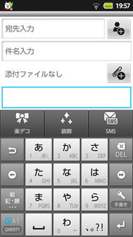 こうしたメールを送るとき、ケータイでは装飾付きのデコレメールがよく利用されるが、101SHは「楽デコ」に対応しており、デコレメールに慣れていない人でも自動的に楽しいデコレメールを作成することができる。自動で作成するとは言え、テイストを選んで雰囲気を変えたり、できあがったデコレメールをベースに、自分なりのカスタマイズを追加することもできる。ちなみに、デコレメールに欠かせないマイ絵文字も1500種類がプリインストールされているほか、ケータイメールで使われてきた通常の絵文字も利用でき、入力時には他社ケータイでも表示可能な絵文字だけを一覧表示できる機能も備える。