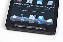 液晶下部に[MENU][ホーム][戻る]の3つのハードキーが配置されていて使いやすい