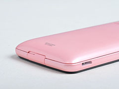 やはり最初に印象に残るのは、なんといってもカラーバリエーションの豊かさである。ローマンブラック、ローマンホワイト、ローマンピンク、ローマンビビッドピンク、ローマンパープル、ローマンブルー、ローマンイエロー、ローマンオレンジの8色展開。1~3色が多いスマートフォンにおいて、ありえない豊富さなのだ。見る角度によってフロスティな輝きも見せるなど表情も豊かで、見ているだけで元気が出そうなポップな仕上がり。フロントにある「クイック起動キー」の色もアクセントになっており、持つ喜びを満たしてくれる。