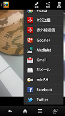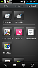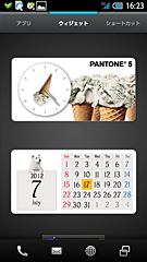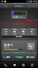 日時が表示される「インフォエリア」はスクロール可能で、フリックするごとに、日時、後述する放射線量の常時測定結果、天気や株価など、表示情報を変えられる。タブのような「ロックキー」を上に少しドラッグすると、カメラ、電話、メールのアイコンが現れ、ロック解除しなくてもすぐ起動できるようになっている。逆に下に引き下げると、ロックが解除されて「3ラインホーム」が現れ、さまざまなアプリやウィジェットがそのまま使え、必要に応じてショートカットを登録して、自分なりの使いやすさを追求できる仕組みだ。
