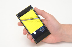 このカラーバリエーションだけでは物足りないというユーザーには、ソフトバンクが「SoftBank Selection」で全7種類の「ガラシール for PANTONE 6」を販売しているので、これを本体に貼れば、なかなか同じものを見かけない『自分だけのPANTONE 6』に仕上げることが可能だ。 ボディは背面をラウンドさせたスリムなデザインを採用している。本体の前面はカラーバリエーションの違いにより、ホワイトとブラックがあり、いずれもマルチコーティング処理で美しく仕上げられている。前面ガラスのエッジ部分も見る角度によって、異なる輝きを放つグラデーションエッジガラスを採用し、背面カバーも全体を覆う構造を採用することにより、全体的に一体感のあるボディに仕上げている。 ディスプレイは1280×720ドット/1677万色のHD表示が可能な4.5インチS-CG Silicon液晶を搭載する。4.5インチというサイズは、冬モデルの中でも比較的大きい部類に入るが、狭額縁を採用することにより、ボディ幅は約65mmに抑えられており、ラウンドさせた背面パネルとも相まって、しっくりと手になじむフォルムにまとめられている。 S-CG Silicon液晶については、この夏に登場したSHシリーズでも採用されているが、液晶透過率の改善などにより、従来比で約2倍の輝度を実現し、バックライトコントロール処理などによる省電力化を実現している。また、一般的な液晶パネルは画面に文字やグラフィックを表示中、常にCPUから画像を伝送しなければならないが、S-CG Silicon液晶では液晶ガラス上のICにメモリを内蔵することにより、メニューや静止画といった動きのないグラフィックを表示しているときは、CPUからの画像の伝送を停止することにより、システム全体での高い省エネを可能にしている。 また、従来モデルでも採用され、好評を得ているSVエンジン3では、色空間の国際標準規格であるsRGB基準に合わせてチューニングした「ナチュラルカラーモード」を搭載し、パソコンなどと変わらない色合いを再現することで、オンラインショッピングなども快適に楽しめるようにしている。この他にも液晶パネルと前面パネルを直接貼り付けて、空気層をなくすことで、太陽光の乱反射などを抑える「リフレクトバリアパネル」をはじめ、環境に応じて、最適なコントラストに調整する「アウトドアビュー」、正面からの視認性を確保しながら、周囲からののぞき見を防ぐ「カラーベールビュー」など、これまでのSHシリーズのスマートフォンで高い評価を得てきた機能は、しっかりと受け継がれている。 CPUは米Qualcomm製デュアルコアプロセッサSnapDragon MSM8960/1.5GHzを採用し、8GBのROM、1GBのRAMを搭載する。外部メモリは最大64GBのmicroSDXCメモリーカードに対応する。パフォーマンスについては、スペックが2012年夏モデルのフラッグシップモデル「AQUOS PHONE Xx SoftBank 106SH」と同等ということもあり、申し分のないレベルで、タッチパネルのレスポンスもシャープ独自の「ダイレクトトラッキング」技術により、快適な追従性となめらかなスクロールを両立させている。このあたりは国内でもっとも多くのAndroidスマートフォンを手掛けてきたシャープならではのノウハウが活きている。