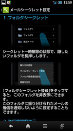 見られたくないメールを特定のフォルダに振り分け、「フォルダシークレット」に設定することで、フォルダ自体を非表示にできる |