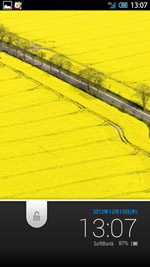 シャープでは従来から「Feel UX」と呼ばれる独自のユーザーインターフェイスを採用し、各社向けのSHシリーズに搭載してきているが、今回の200SHでは従来よりも一段と使いやすく、バージョンアップしている。まず、本体の電源を入れたときに表示されるウェルカムシートは、言わば、200SHの玄関に相当する場所だが、ここには5枚の壁紙を設定することができ、左右にフリックすることで、壁紙を切り替えることができる。画面中央のやや左下にあるタブの部分はロックボタンで、これを下方向にドラッグすると、ホーム画面が表示される。ロックボタンをドラッグせず、タップすると画面にショートカットバーが表示され、カメラやメール、電話などの機能をすぐに起動することができる。ショートカット起動はユーザの好みにあわせてカスタマイズすることもできる。