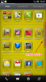 この3つのシートは、左右にフリックしたり、画面上部のタブの部分をタップすることで表示を切り替えることができるが、今回の200SHからはタブの部分をロングタッチして、左右にドラッグすれば、3つのシートの並び順を変えることができる。また、縦方向にスクロールするとき、画面右端のスクロールバーをタッチしたまま、上下に動かすと、より早く画面をスクロールさせることも可能だ。