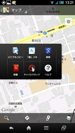 このクイックツールボックスEXから起動できる「書(かく)」メモも、新しい機能のひとつだ。これは表示している画面に手書きでメモを書き加え、画像として保存できるものだ。ちょっとしたメモにも役に立つが、地図などに必要な情報を書き加えたり、ブラウザで表示したWebページの必要な部分だけを切り抜いて、保存したり、共有するといった使い方もできる。