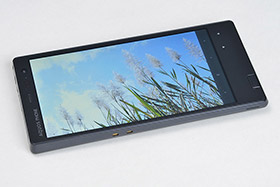 パフォーマンスが高くなれば、自ずとバッテリー消費が気になるところだが、前述のIGZO搭載ディスプレイによる省電力だけでなく、さまざまなロングライフへの取り組みが行なわれている。バッテリーは2200mAhのリチウムポリマー大容量バッテリーを採用し、固定式にすることにより、スリムなボディにまとめている。利用頻度の高い音楽再生については楽曲データを効率良く処理することにより、消費電力を抑え、音楽の連続再生時間を約70時間まで延ばしている。