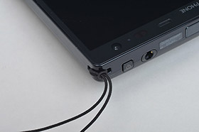 | ラウンドさせた本体背面 | 本体上部にストラップホールが備えられている |