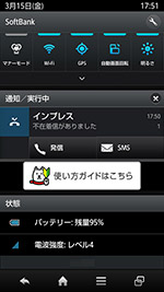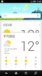 まず、プラットフォームは画面表示の高速化やGoogle Nowがサポートされた「Android 4.1」を採用する。Android 4.1についてはまだ搭載スマートフォンがそれほど多くないが、細かい部分も含め、実用面でのメリットも多い。たとえば、Miracastによるワイヤレスディスプレイの出力に対応し、スマートフォンで表示中の写真やインターネット経由で視聴している動画などを対応テレビに出力できたり、ステータスパネルに表示された着信履歴から直接、相手に発信したり、SMSを送信することができる。NFCにも対応しているため、Android Beamで他の端末などに写真などのデータを簡単に送ることができる。Google Nowについては、まだサービスが提供され始めたばかりで、それほど多くのカードが表示されるわけではないが、現在地の天気以外にも新しい情報が表示されるようになりつつあり、今後のGoogleのサービス拡充が期待される。