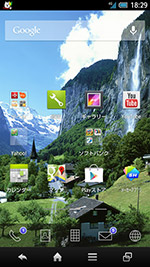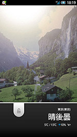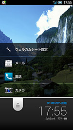 | 株価や天気予報なども表示できる「ウェルカムシート」 | 3つのシートが縦方向にスクロールする「3ラインホーム」を搭載 | Android標準のホームアプリと似た「SHホーム」も標準でプリセットされている | FacebookやTwitter、mixiなどの更新情報を表示できる「Social Board」 | |||||