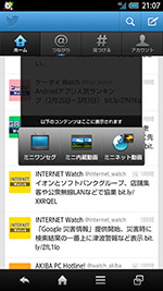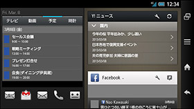 | 「アナザービュー」では、ワンセグ、内蔵動画、ネット動画(YouTube)の画面をウィンドウで重ねて表示できる | ニュースやスケジュール、メールや不在着信、SNSの更新情報などをひとつの画面にまとめて表示できる「パーソナルコレクトボード」 | |||