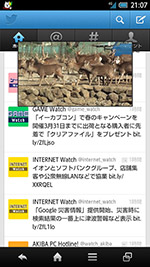 端末そのものの直接的なエンターテインメントではないが、ハイスペックを活かした機能も搭載されている。たとえば、最近ではテレビを見ながら、Twitterなどでコミュニケーションを楽しむ利用スタイルが増えているが、203SHではTwitterなどの画面にワンセグの画面をウィンドウで重ねて表示できる「アナザービュー」が利用できる。ウィンドウサイズも3段階に変更でき、動画もワンセグだけでなく、YouTubeの動画なども重ねて表示することが可能だ。少し変わった活用スタイルでは、別売の卓上ホルダーに端末をセットしたとき、ニュースやスケジュール、メールや不在着信、SNSの更新情報などをひとつの画面にまとめて表示できる「パーソナルコレクトボード」がなかなか実用的だ。朝起きたとき、卓上ホルダーにセットされた203SHをひと目見れば、必要な情報を確認できるわけだ。ちなみに、卓上ホルダーに端末をセットしたときやUSBケーブルで充電を開始したとき、横画面でワンセグの録画番組やブルーレイディスクレコーダーから転送した番組、YouTubeの新着動画などを時計と共に表示する「Dock to Play」という機能も利用できる。