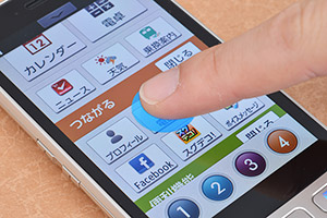 そこで、シンプルスマホでは、ボタン表示に指先を当て、軽く押し込むことで、はじめて押した操作になる「かんたん押し感タッチ」を採用している。