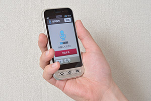 | ディスプレイ下のボタンは、不在着信や新着メールがあると光るようになっている | メールの作成や機能の起動が、音声操作でできる |