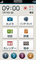 ユーザインターフェイスについては、縦横無尽に動かせるようなAndroid標準のものと違い、シンプルな縦方向のみのスクロールで構成された「シンプルラインホーム」を採用する。もっとも利用頻度が高いカメラやブラウザ(インターネット)、地図、実用性の高い辞書やカレンダー、電卓などのアイコンを時計や天気予報などのアイコンと共に最上位にレイアウトし、その他の機能はカテゴリ別に分けて表示される。それぞれのカテゴリはカテゴリタイトルの[閉じる][開く]をタップすることで、表示を開いたり、閉じたりできる。