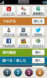 | 文字サイズが大きいオリジナルの地図アプリを搭載 | [戻る]や[メニュー]などの見やすいボタンをレイアウトしたブラウザ | インターネットや地図、カメラ操作画面など、さまざまなアプリで画面の一部分を拡大表示できる「かんたんズーム」 |