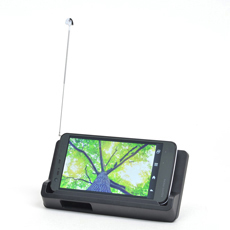 ついにフルセグテレビ放送の受信に対応。クレードルにセットすれば、そのたたずまいはまさに「卓上の大画面液晶テレビ」