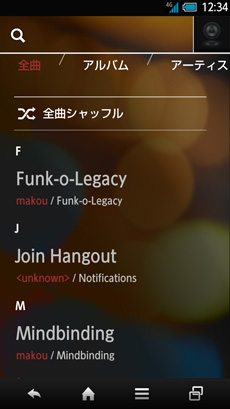 また、楽曲を再生するプレーヤーについては、Android標準のものではなく、オリジナルデザインの「ミュージックプレーヤー」をプリインストールしており、ステレオイヤホンを3.5φのステレオイヤホン端子に接続すれば、自動的に起動できるようにしている。再生中の楽曲の情報が表示できることはもちろん、インターネットで検索したアーティスト情報やYouTubeなどの映像コンテンツの検索、Twitterでのシェアなど、多彩な活用を可能にしている。