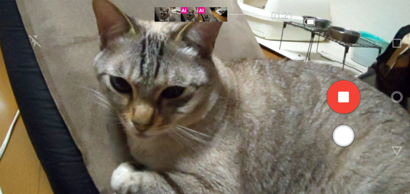 動画撮影中に撮影された写真は上部にサムネイルが出現。AIとマークがついたものは自動撮影されたもの、ついていないのは自分でシャッターボタンを押した写真だ