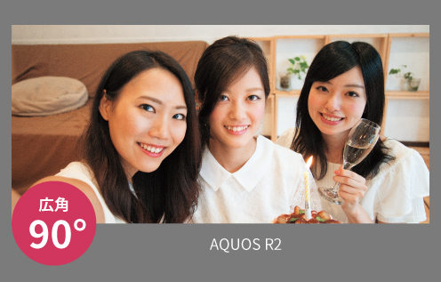 また、スマートフォンのカメラでもうひとつ忘れてはならないのがインカメラだが、AQUOS R2のインカメラは昨年のAQUOS R Compactと同じように、ディスプレイの上部を半円状にくり抜いた位置に内蔵される。カメラのスペックとしては、1630万画素のイメージセンサーにF2.0のレンズを組み合わせており、約90度の広角撮影が可能だ。
