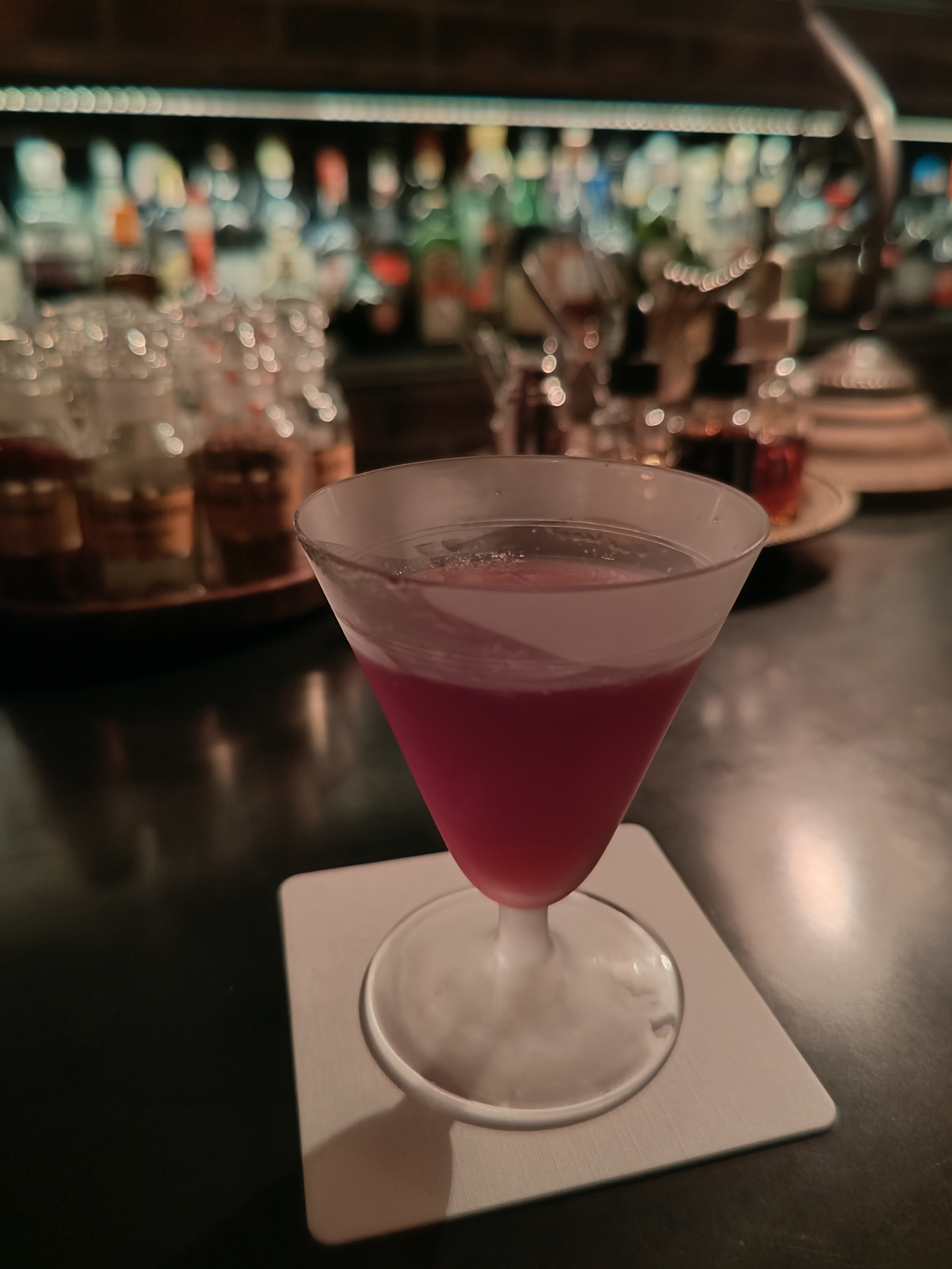 ポートレートで撮影。背景のネオンやライトがぼけて、人物が際立っている
