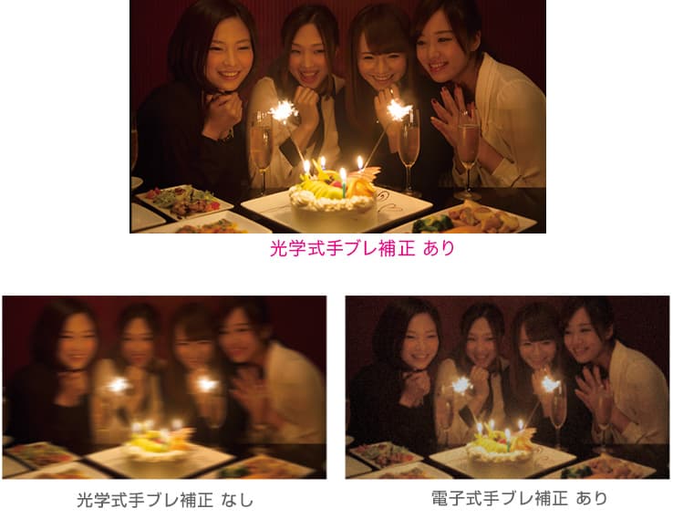 撮影機能としては光学式手ブレ補正が新たに搭載され、暗所での撮影でも手ブレしづらくなっている。また、夜間の撮影時などに人物をフラッシュON、背景を複数枚フラッシュOFFで撮影して明るい写真へと合成するNight Catch IIなどが従来モデルから受け継がれている。